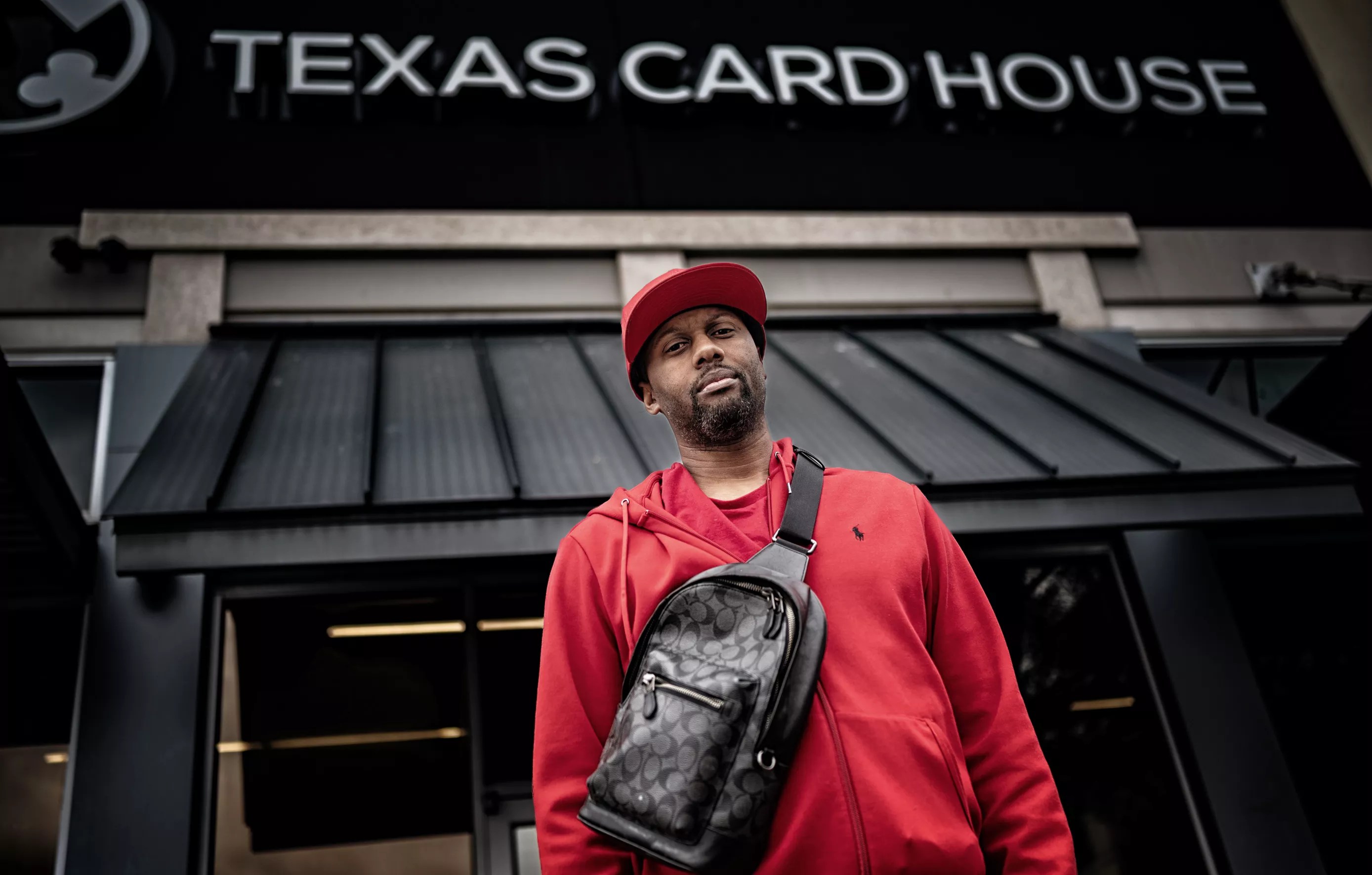 The operation lacks the glitz of a Vegas casino. Texas Card House is BYOB only. You can drop off your bottle with one of the waitresses at a snack bar near the entrance and she’ll bring you drinks as you play. But there’s no buffet or endless din of slots, just 26 or so semicircular tables with four to six players each, focused on the cards. One of them is Shomari Williams, 38, a regular in Dallas’ poker scene.