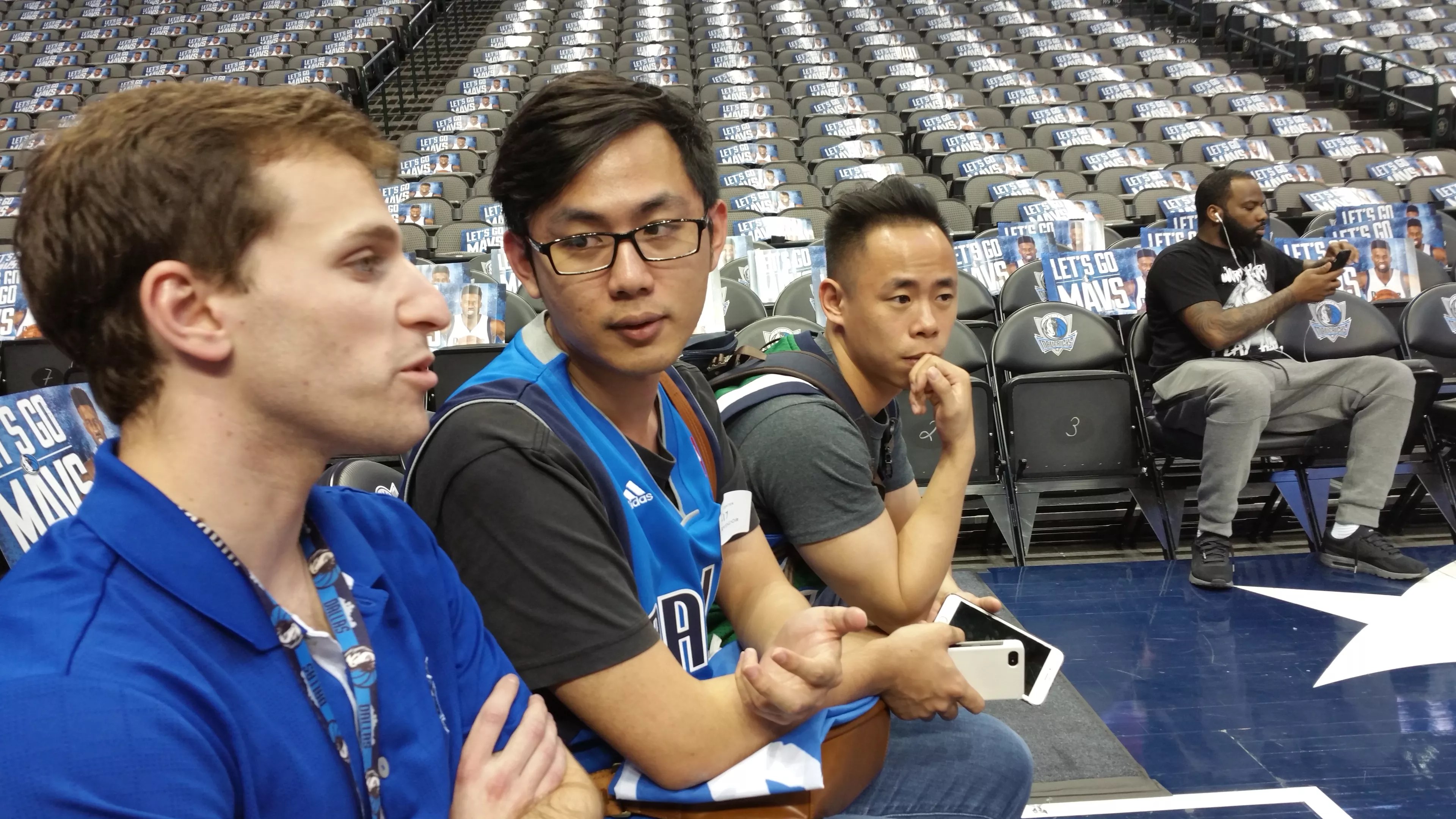 Sun Lizhe and Chen Shoupo sit court side and watch the Mavs warm up for the second to last game of the season. The team’s record is dismal and playoff hopes are long since dashed, but the Taiwanese duo are focused on the positive. This is their first trip to the United States. They went to San Antonio and enjoyed it, but the centerpiece of the trip is a Mavericks home game.