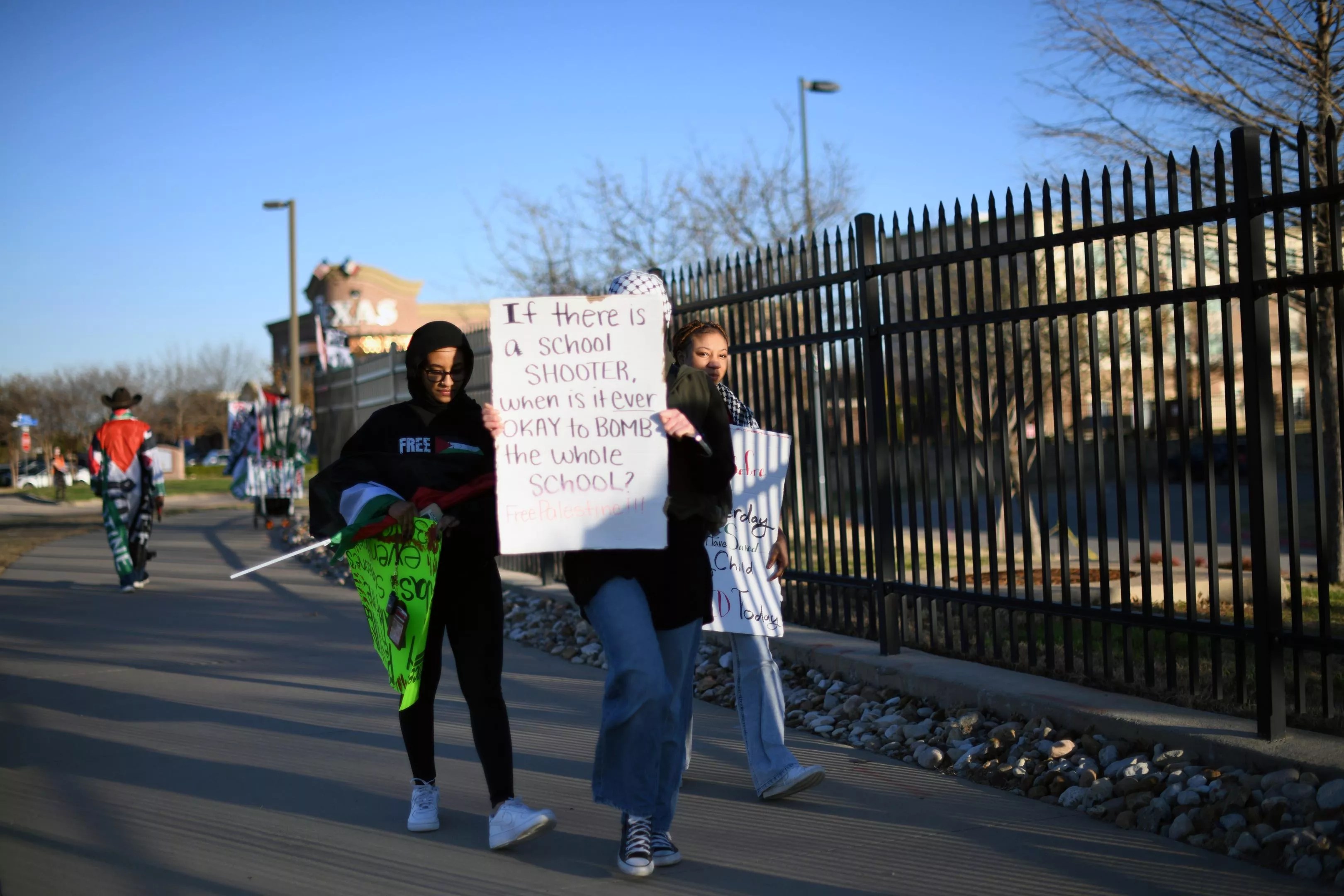 Thursday’s rally was organized by Texas for Palestine, the same group that held a rally at the same location on Feb. 16. Rally organizers say Texas for Palestine is a group dedicated to raising awareness about Palestinian rights and supporting the Palestinian cause in Texas. The group’s goal is to advocate for justice, equality and human rights for Palestinians, which may include ending the Israeli occupation; supporting boycotts, divestment and sanction campaigns; and promoting Palestinian self-determination. It’s one of several efforts in North Texas calling on various authorities and involved parties to bring about peace.