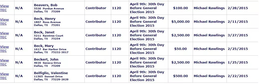 Not too deep into Mayor Mike Rawlings’ campaign finance reports we find examples of family names.