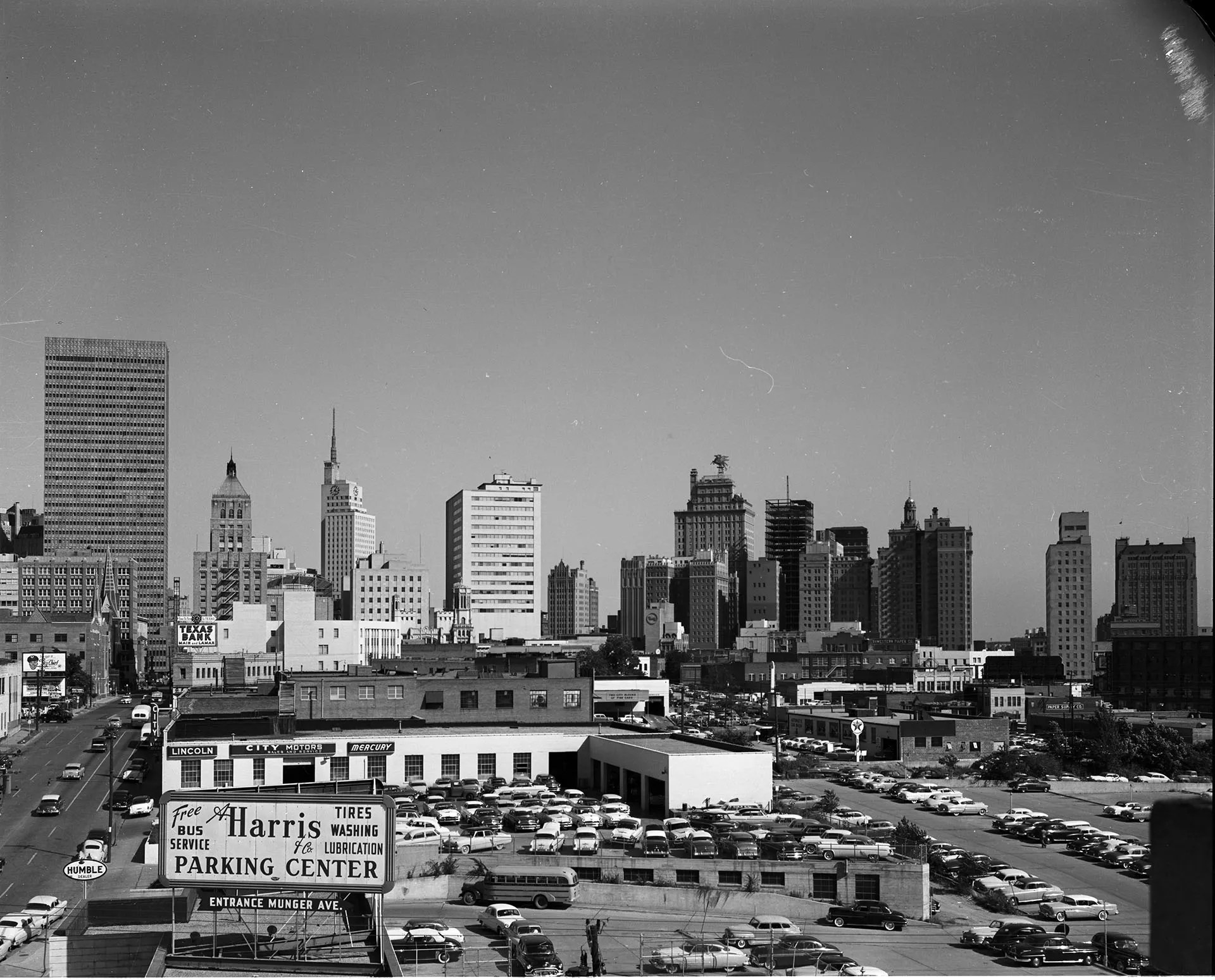 View of downtown Dallas looking south from Munger Avenue in 1954