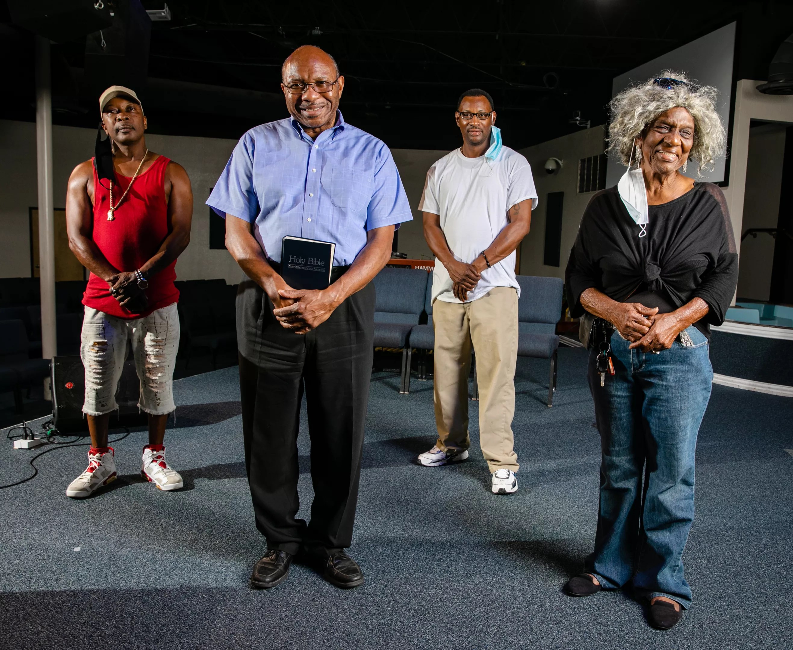 From left to right: Lucky Clark, Pastor Chris Simmons, Perry Eakles, Gladys Richardson at Cornerstone Baptist Church