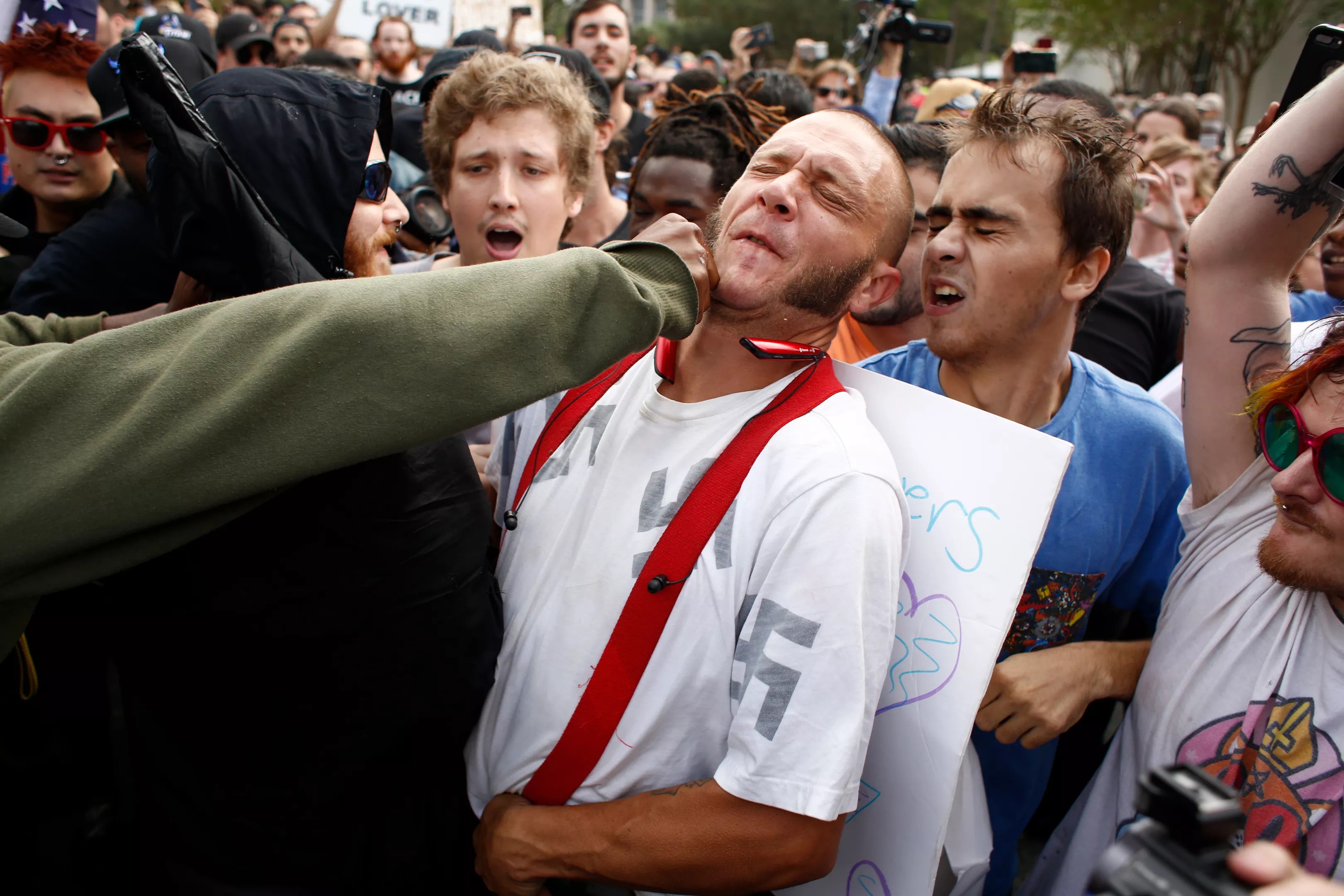 Nationwide, instances of white supremacist groups handing out leaflets and posting flyers in public places more than doubled last year, and Texas is one of a handful of states leading the pack. White supremacist groups are making their presence known on America’s college campuses. They aren’t always well-received. Brian Blanco / Getty Images