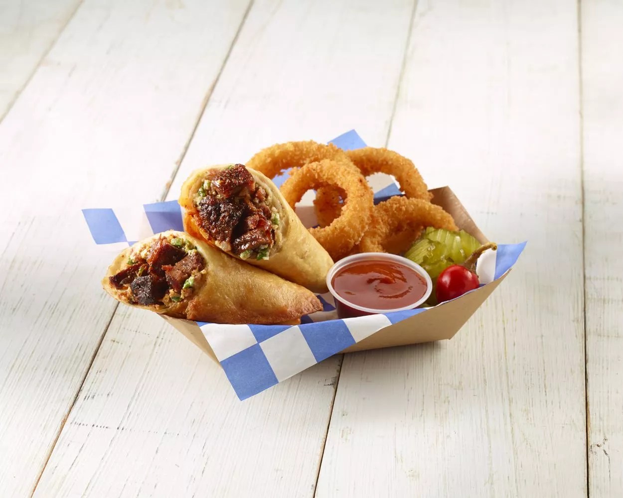 Everyone knows the best part of barbecue is getting a bite of the crispy, blackened, succulent burnt ends. This dish takes that flavor and cranks it up to the max. Built with a traditional tortilla, a spread of jalapeño popper cream cheese, crispy bacon and a Mexican cheese blend, it’s like Tex-Mex had a baby with a Hill Country barbecue joint. If all that weren’t enough though, the whole thing is folded up, lightly fried and topped with barbecue sauce.
