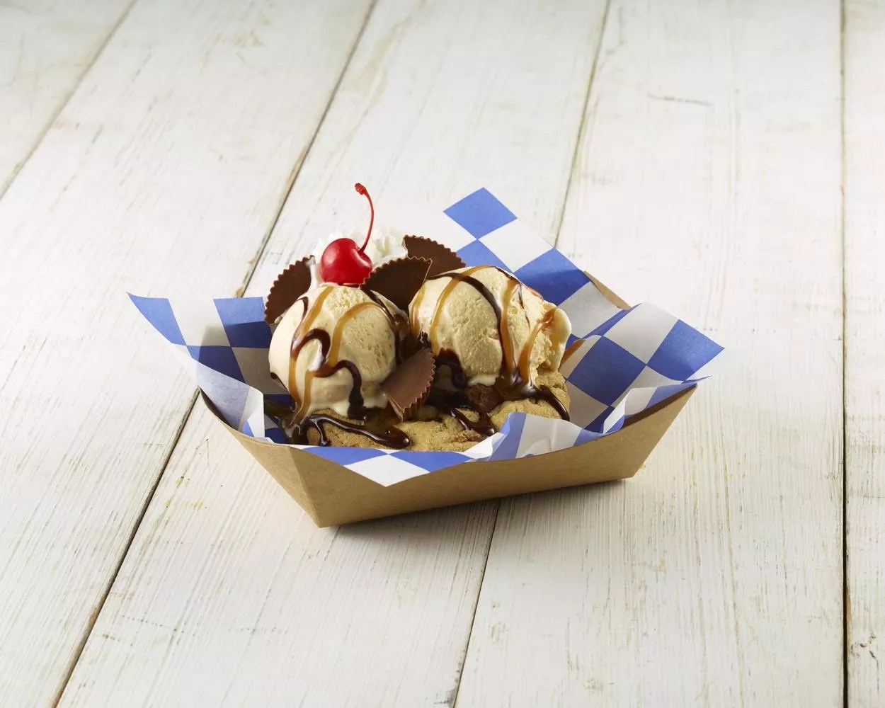 An odd name for a simply delicious-sounding dish, this item brings a bit of simplicity to the State Fair food lineup. A fresh and warm peanut butter cookie is served a la mode, with caramel, chocolate drizzle and the expected cherry.
