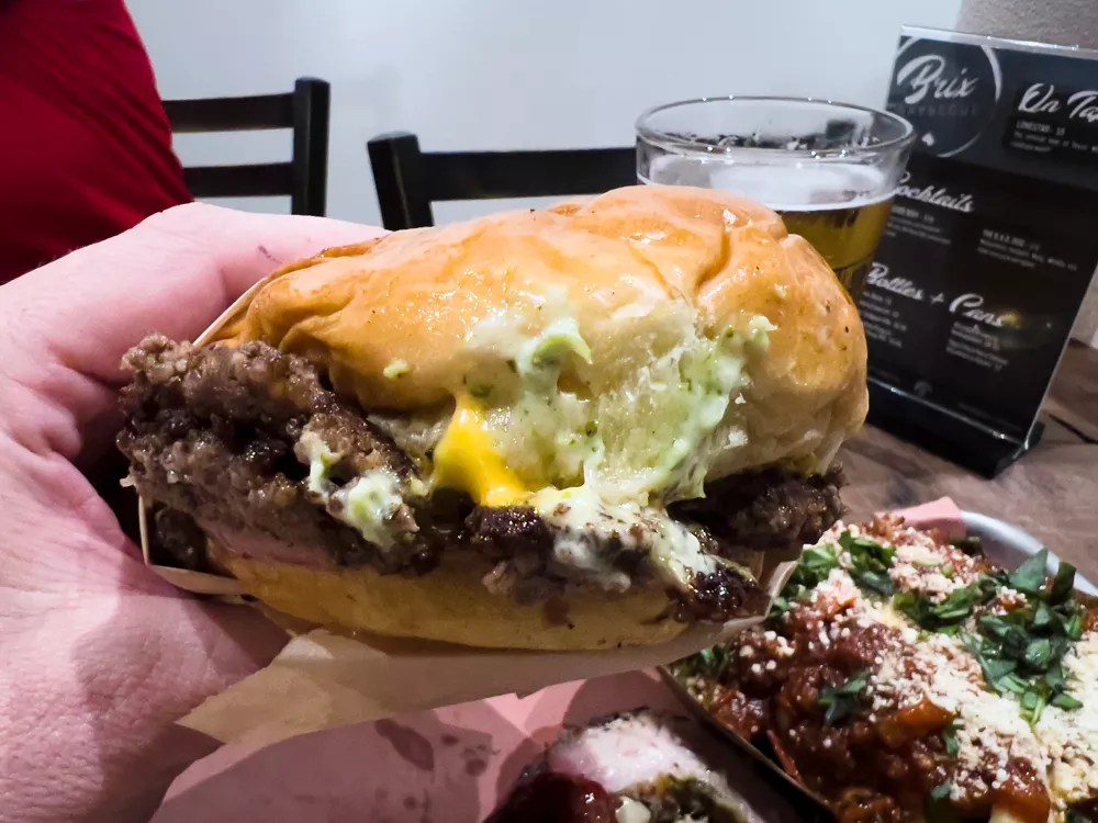 Brix has a smash burger loaded with melty cheese and Dank Sauce that we adore.