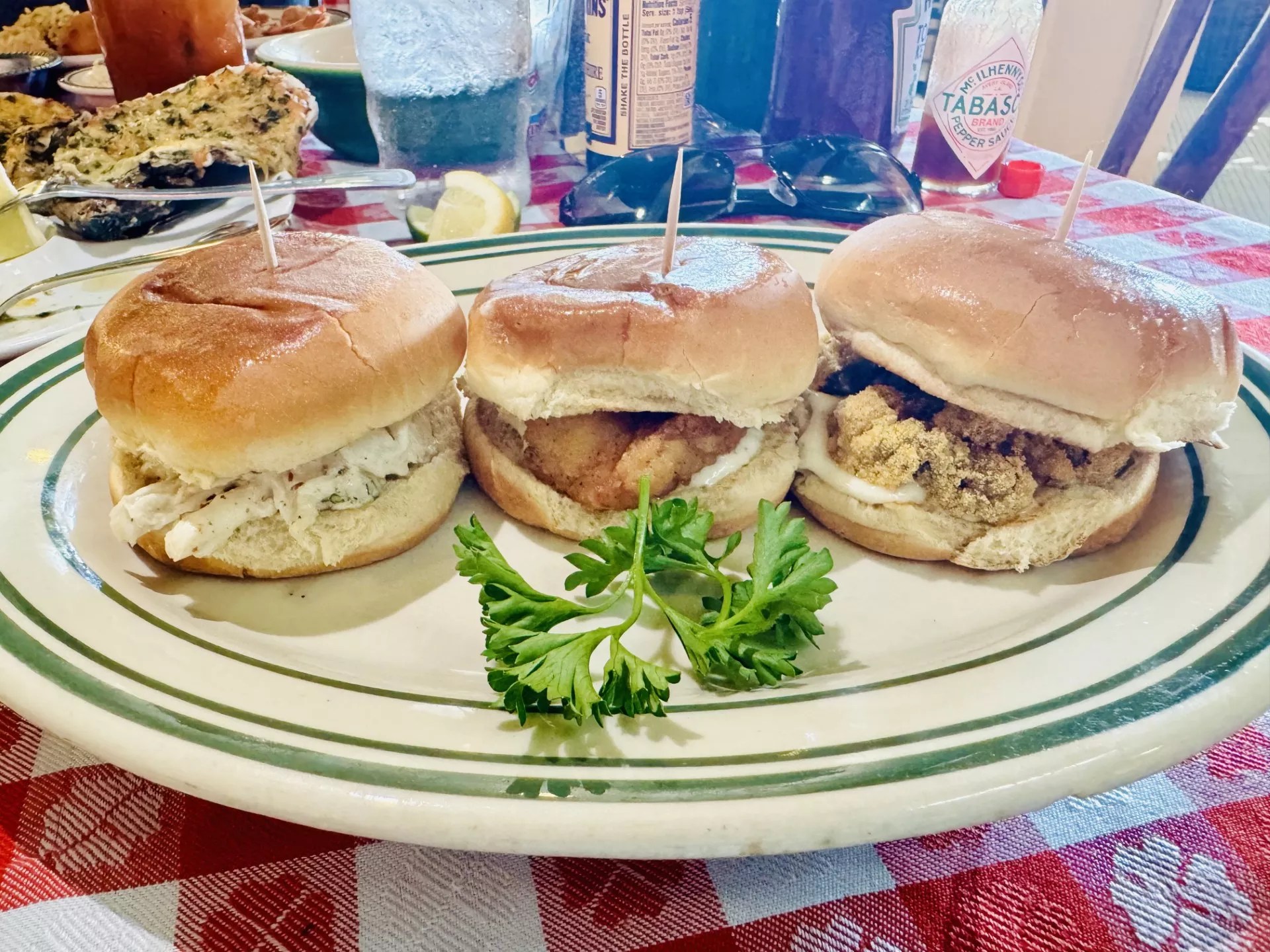 S.&D. sliders (from left: crab Maison, shrimp, fried oyster).