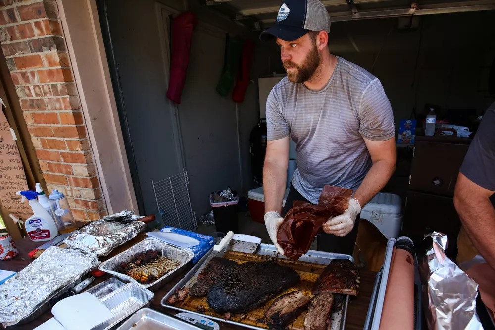 At the top of the driveway, the shade of the open garage provides a modicum of relief from the afternoon sun. However, there’s no escaping the fact that temperatures are pushing past the century mark, and Dayne Weaver wears the sweat-soaked shirt to prove it. Weaver is the owner, pitmaster and, this afternoon, primary meat cutter of his namesake venture, Dayne’s Craft BBQ. It was Weaver’s Instagram account (@daynetxbbq) that lured us to Fort Worth with the promise of fine smoked meats, which are sold on a more or less monthly basis via pop-ups advertised to his nearly 3,000 followers.