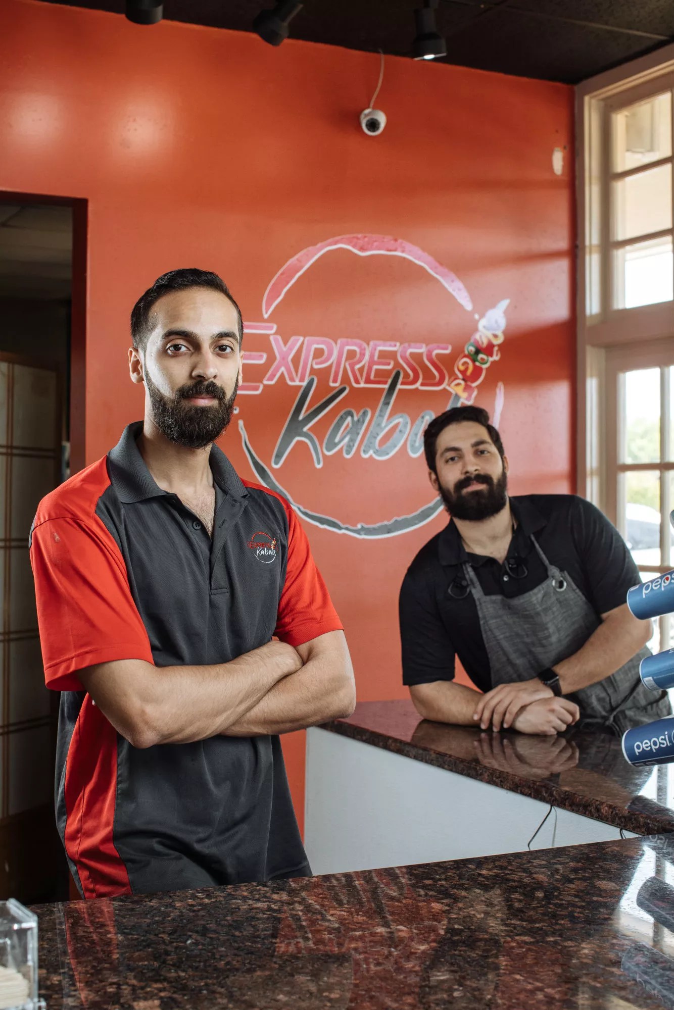 When I first walked into Express Kabob, the restaurant was empty. Not just empty of customers – empty, period. As the door shut behind me, the sound attracted the attention of no employees. I tried opening and closing the door again. No luck. I picked a chair up and dropped it from about four inches above the tile floor. Owners (and brothers) Reahim Budri (left) and Naim Budri. Kathy Tran