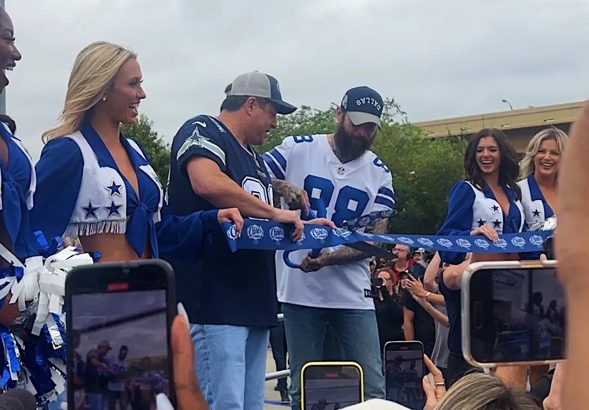 Malone, surrounded by Graves, the Dallas Cowboys cheerleaders and several screaming fans, whom he stayed and talked with following the event, cut the blue ribbon officially opening the new location.