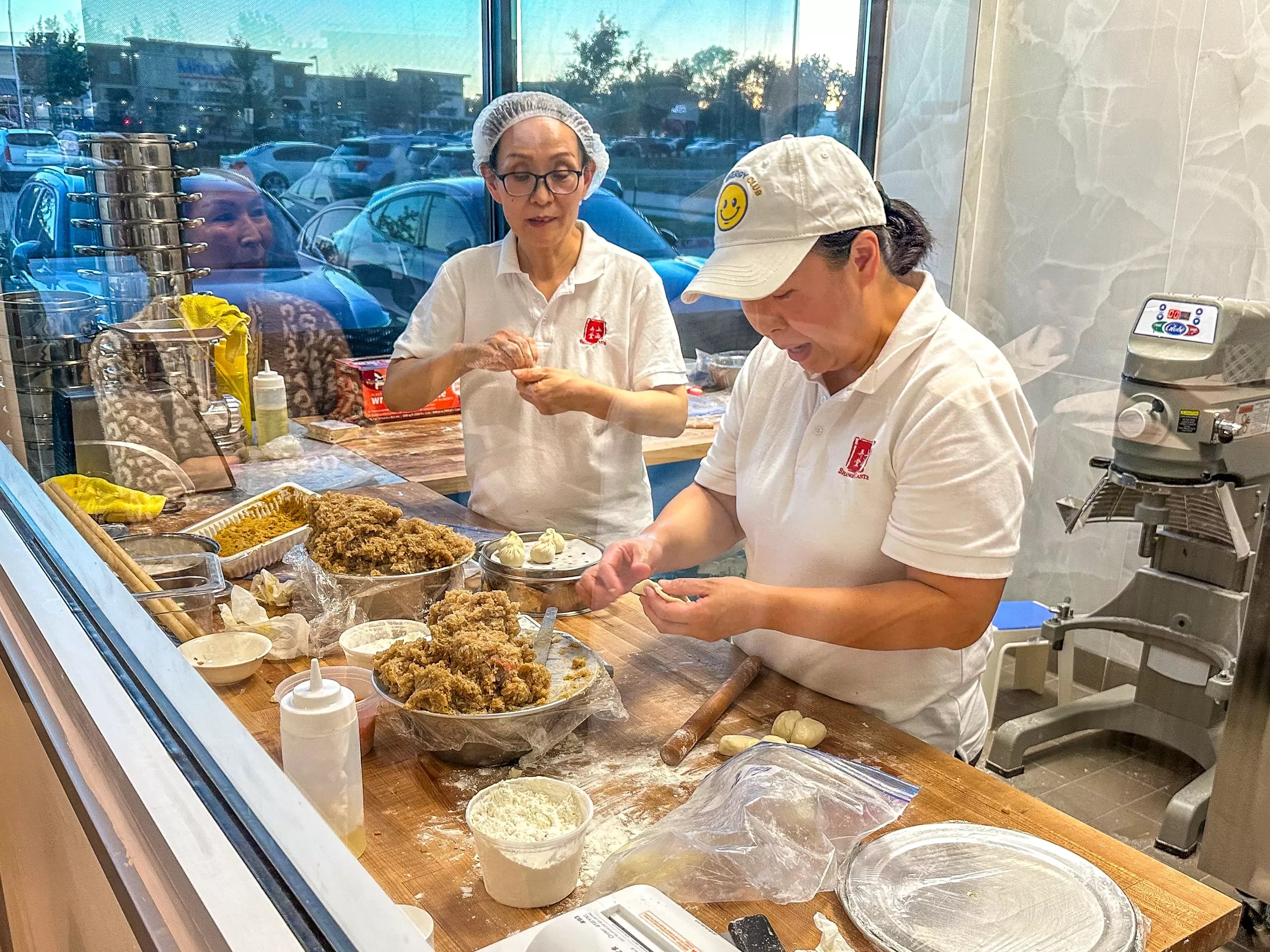 The new Texas location shop, in Plano, is a small affair in a narrow space with fewer than 50 seats. Part of the space is reserved for the prep area where you can watch diligent dumpling artisans plying their trade, kneading, rolling and forming the numerous varieties of dumplings.