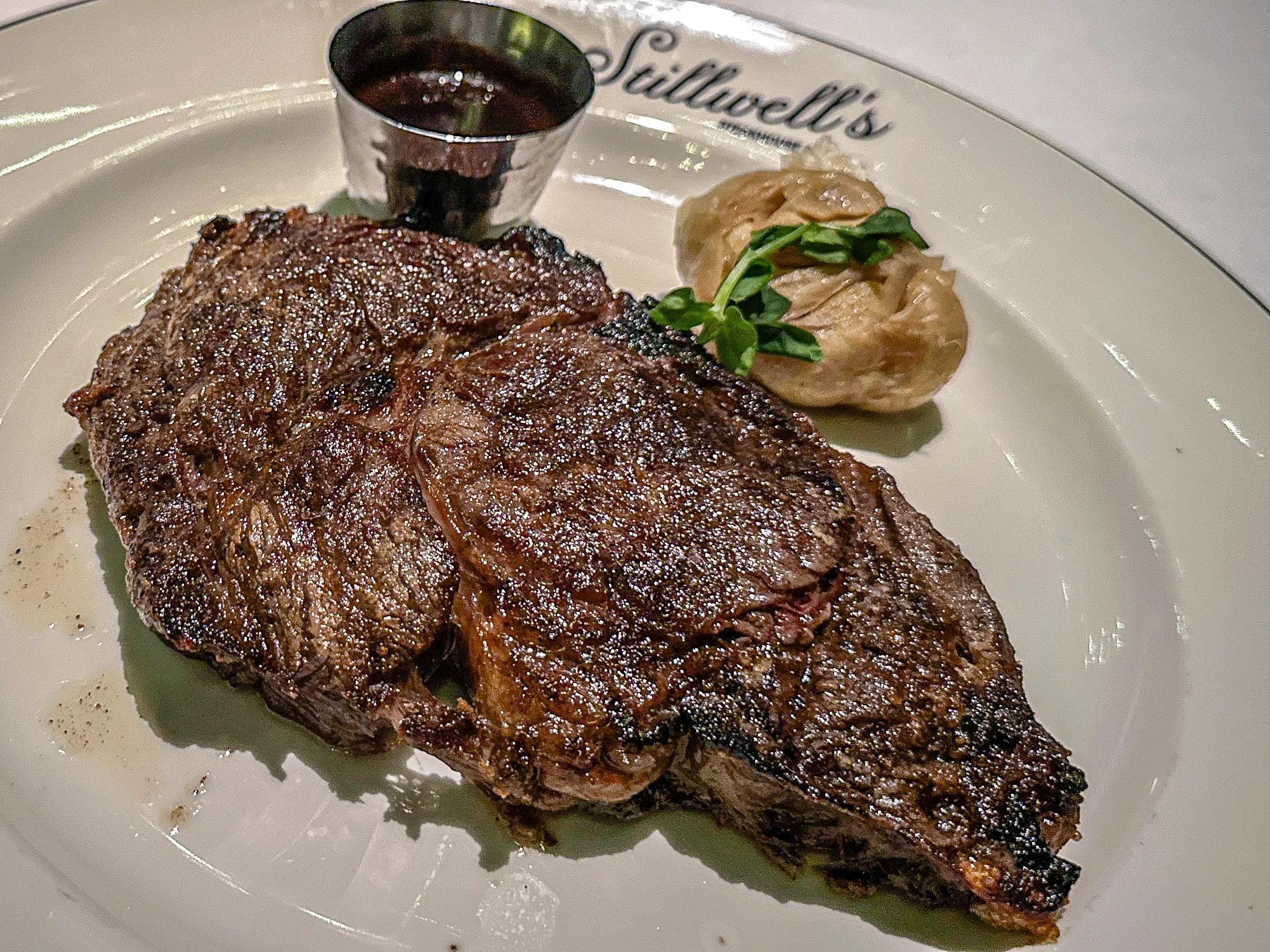 Stillwell’s presents cuts that are aged at least 28 days and offers HWD beef, an Akaushi beef that is locally raised exclusively for Harwood. In an interesting twist, all steaks come with a side of house-made steak sauce as well, which conjured up happy memories of my grandfather, who would insist on a bottle of A.1. steak sauce for his beef.