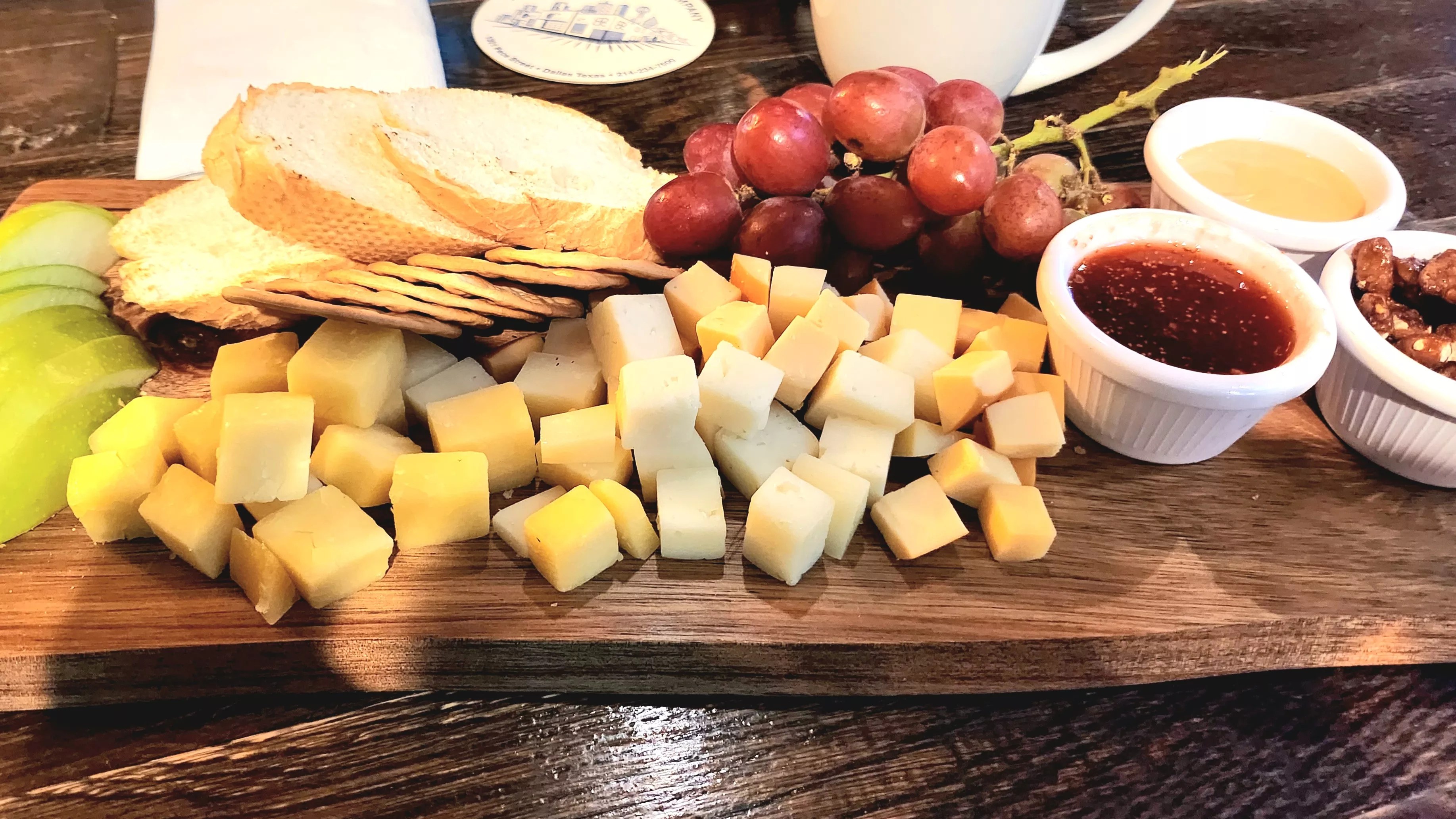 The Londoner’s cheese board is a shareable assortment of cheeses, fruit, bread and crackers.