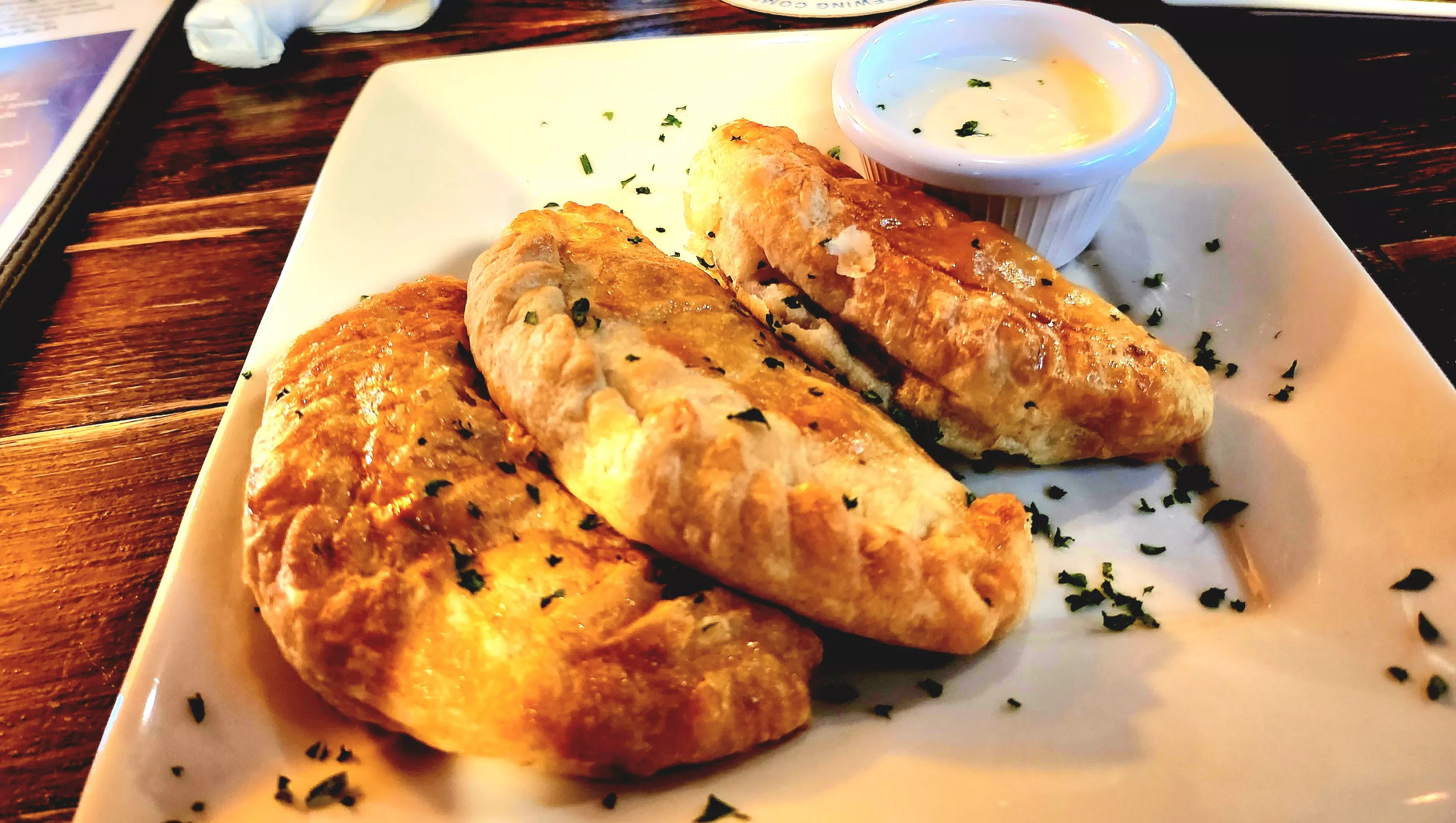 Next, we tried the Texas pasties ($13), Guinness-braised short rib in a golden flaky puff pastry served with horseradish chive cream sauce. Our waitress, who was fantastic, said it was her favorite item on the menu. It was easy to taste why.