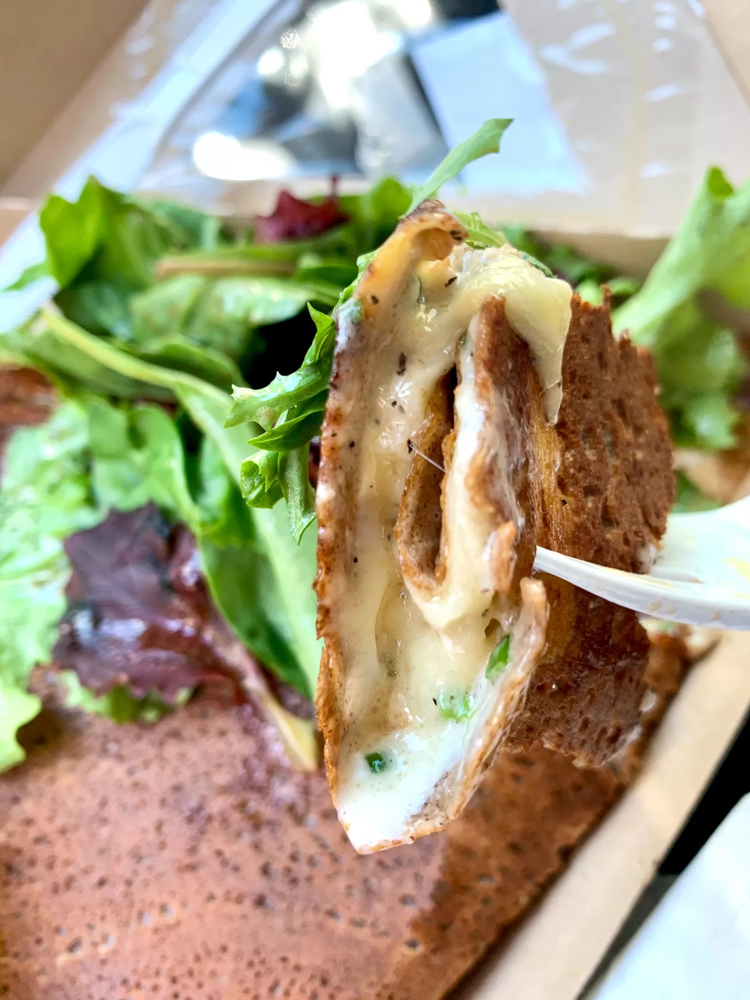 At Whisk Crêpes Café, there are no tables outside (yet – owner Julien Eelsen says there may be in a few weeks) so stand at a distance and consume the goods in the sunshine. Or do so in your car.